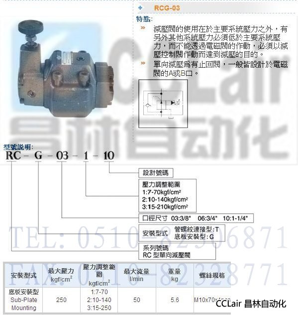 RCG-03-1-10,RCG-03-2-10,RCG-03-3-10,單向減壓閥