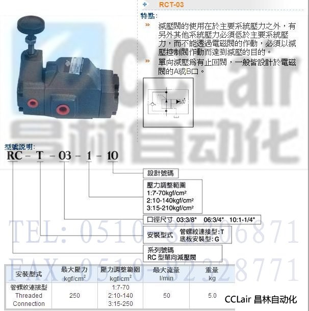RCT-03-1-10,RCT-03-2-10,RCT-03-3-10,單向減壓閥