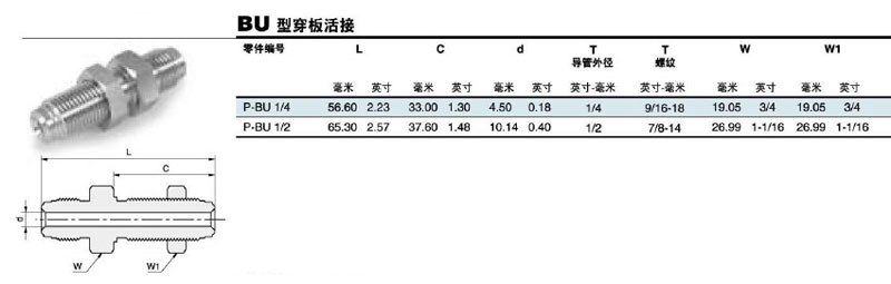 詳細(xì)信息 P-BU-1/4,P-BU-1/2,穿板活接頭
