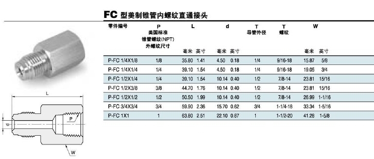 您當(dāng)前的位置:首頁 » 產(chǎn)品&解決方案 » P-FC-1/4*1/8,P-FC-1/4*1/4,P-FC-1/2*1/4,P-FC-1/2*3/8,P-FC-1/2*1/2,錐管內(nèi)螺紋直通接頭