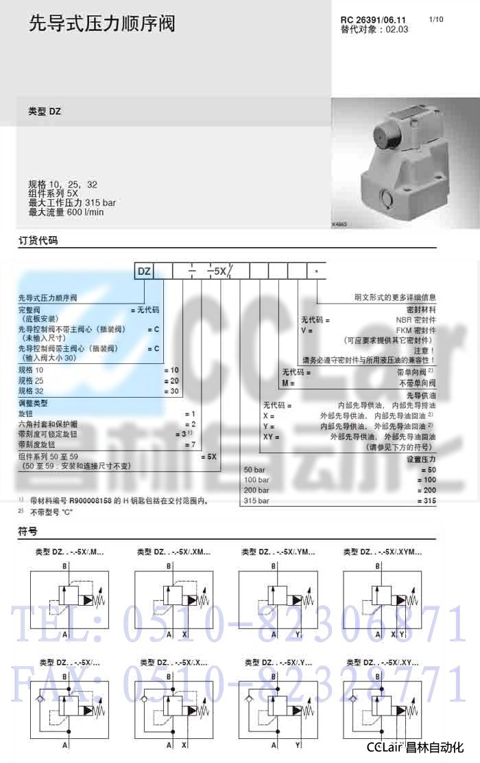詳細(xì)信息 DZC30-2-5X/50,DZC30-2-5X/50XY,DZC30-2-5X/100 ,先導(dǎo)式壓力順序閥,力士樂REXROTH,德國力士樂
