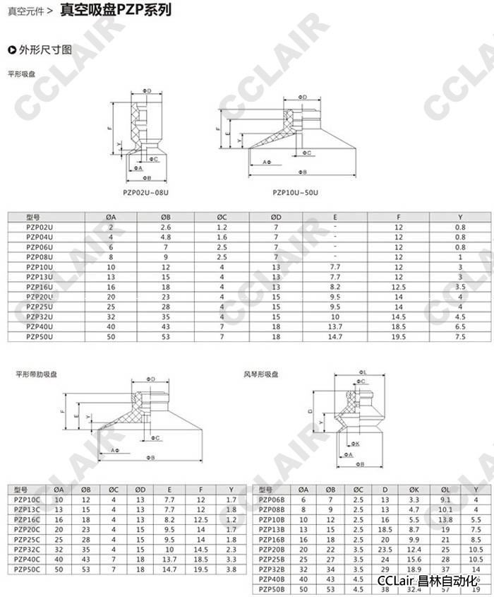 詳細(xì)信息 PZP32U,PZP40U,PZP50U,PZP20C,PZP25C,PZP32C,PZP40C,PZP50C,PZP02B,真空吸盤