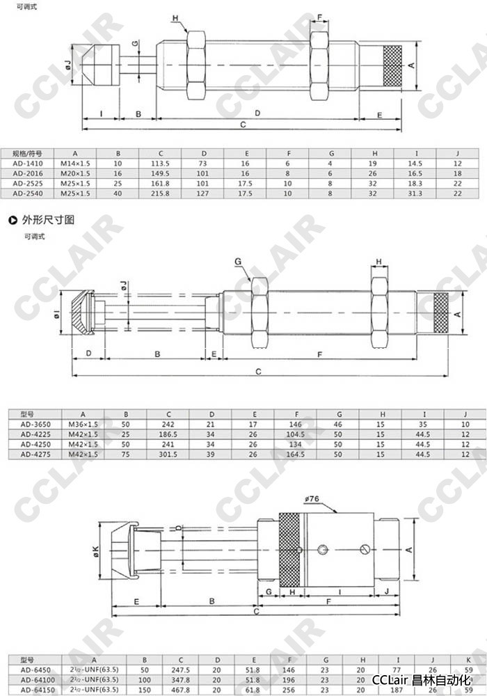 AC-0806,AC-1005,AC-1008,AC-1210,AC-1412,AC-1416,AC-2020,AC3660,油壓緩沖器