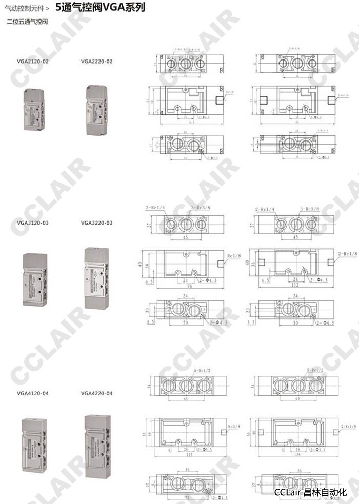 VGA1320-01,VGA1420-01,VGA1520-01,VGA2320-02,VGA2420-02,VGA2520-02,5通氣控閥