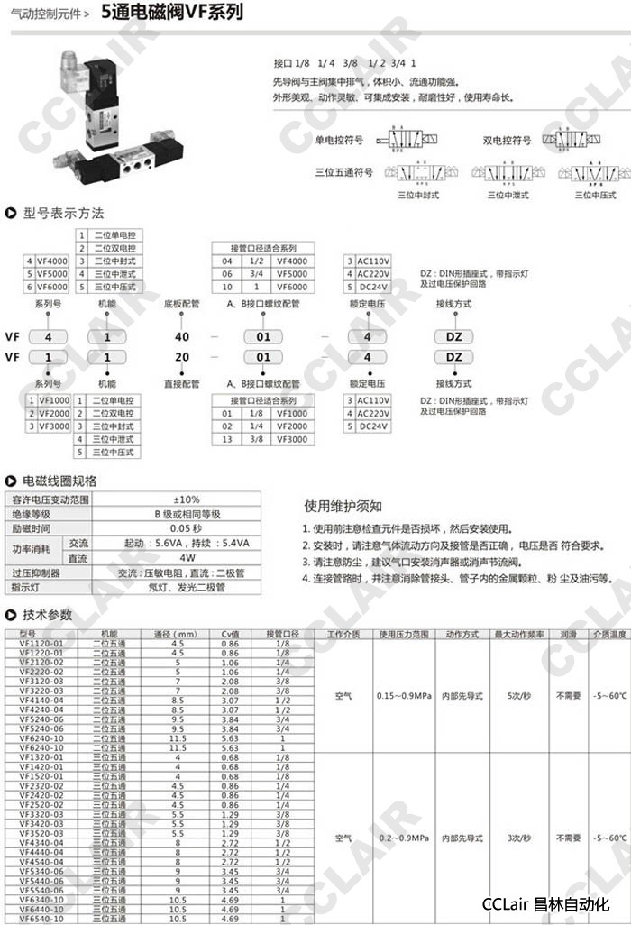 詳細(xì)信息 VF1120-01,VF1220-01,VF1320-01,VF1420-01,VF1520-01,5通電磁閥