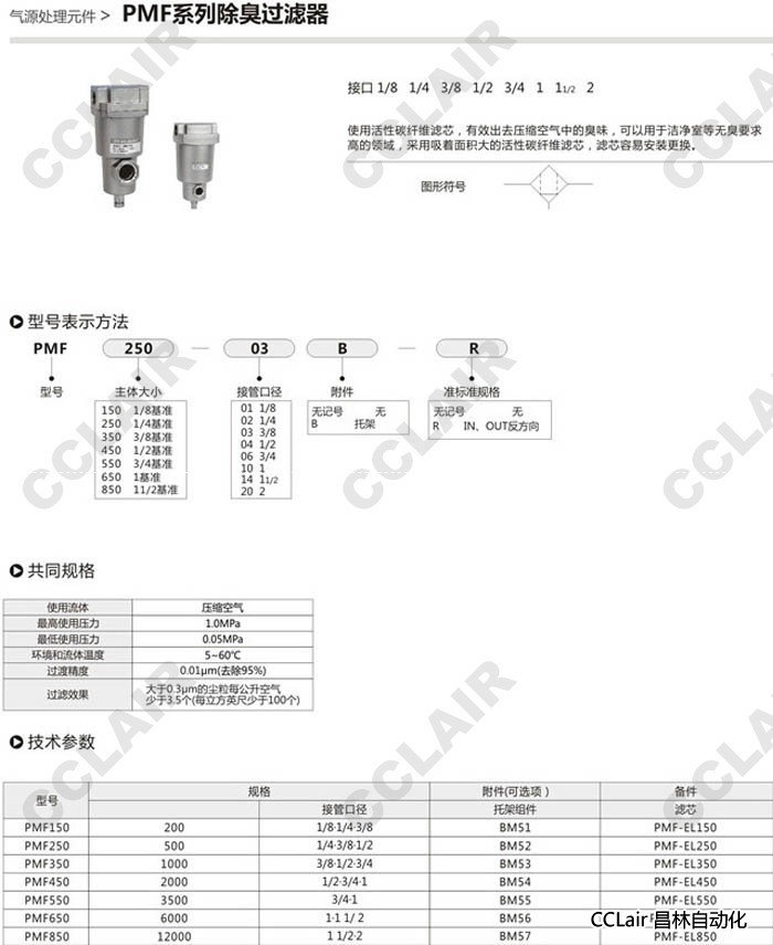 詳細信息 PMF150,PMF250,PMF350,PMF450,PMF550,PMF650,PMF850,除臭過濾器