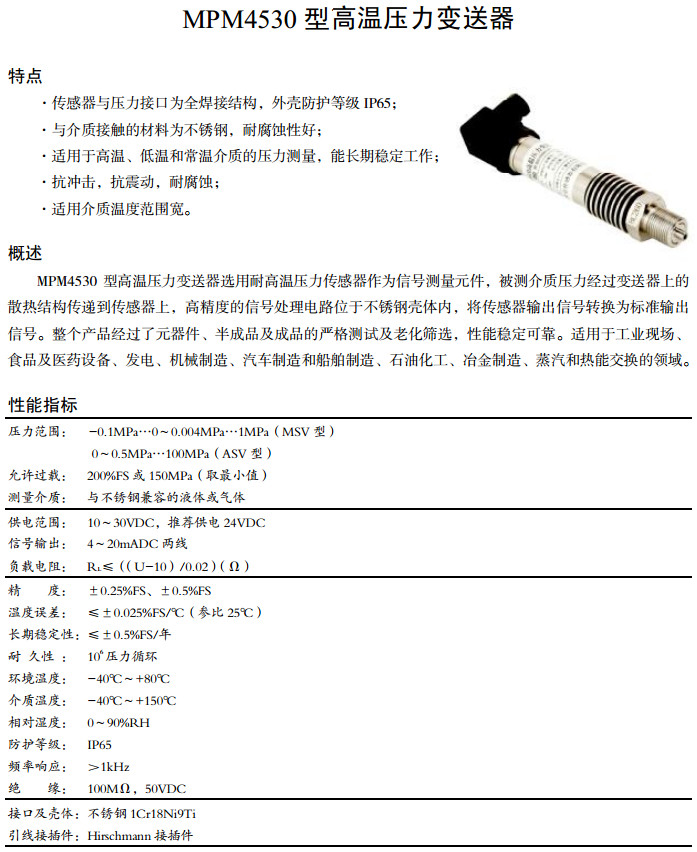 詳細(xì)信息 MPM4530-0.1,MPM4530-1,高溫壓力變送器