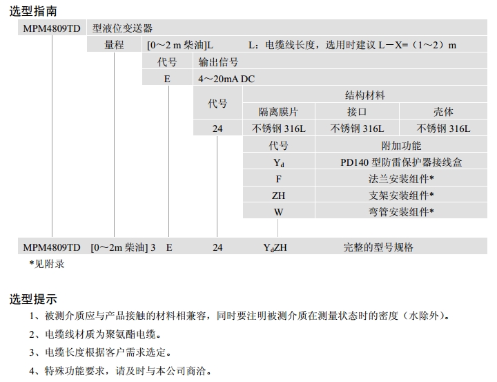 MPM4809TD,液位變送器