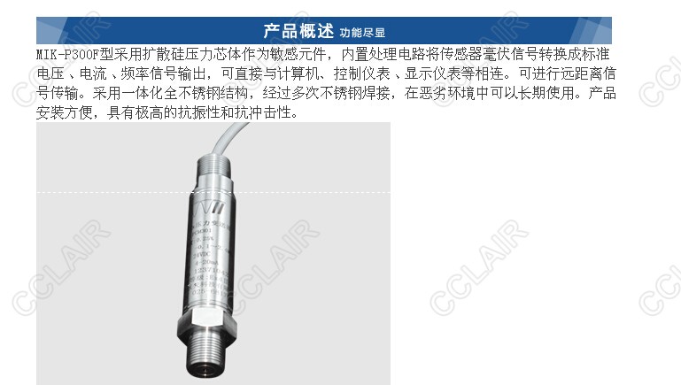 詳細信息 MIK-P300F,防腐型管道壓力變送器