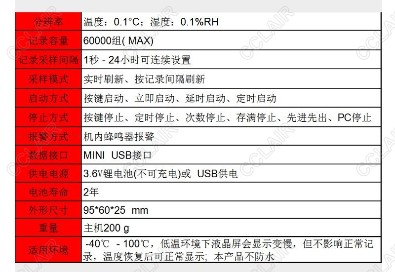 詳細(xì)信息 RX-TH2,溫濕度記錄儀