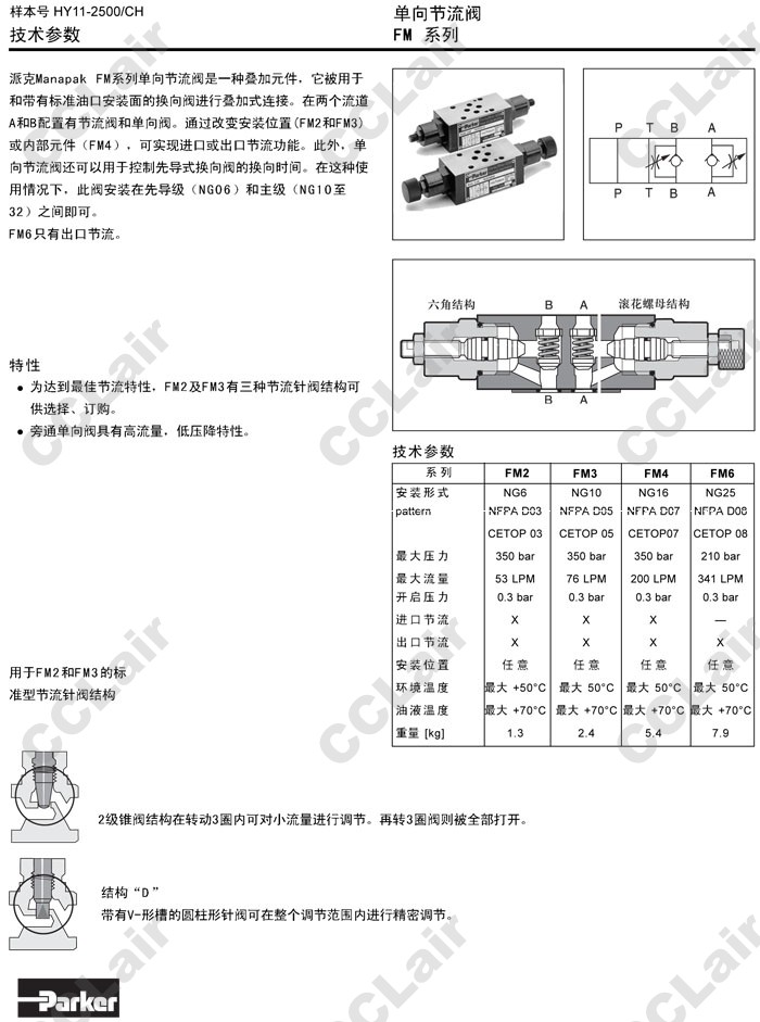 FM4DDTVHT,FM4DDFVHT,FM6DDKV,Parker單向節(jié)流閥
