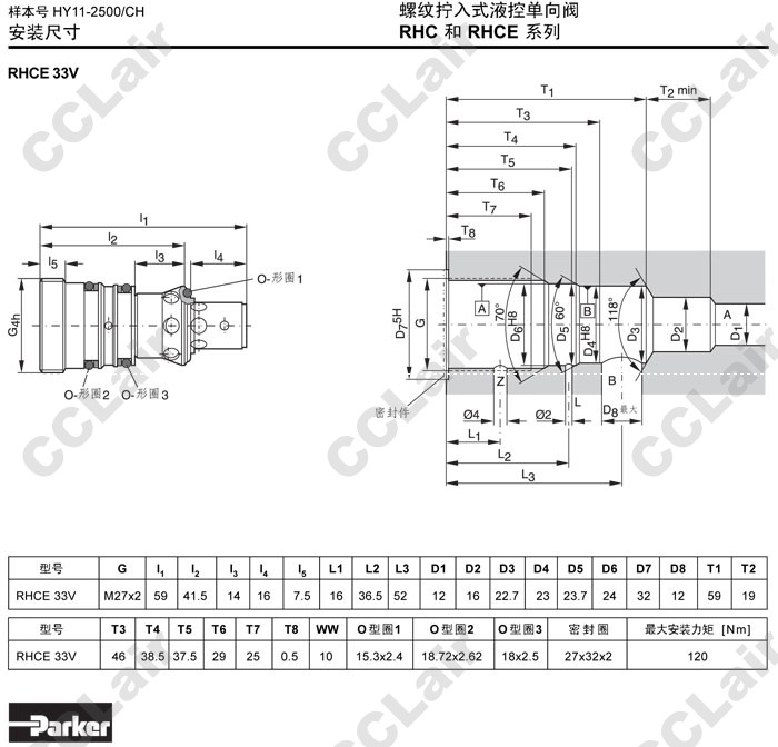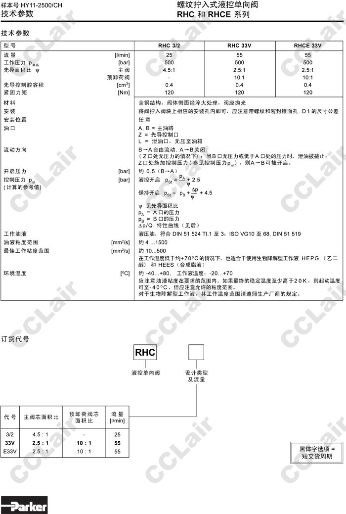 詳細(xì)信息 RHC3/2,RHC33V,RHCE33V,Parker螺紋擰入式液控單向閥