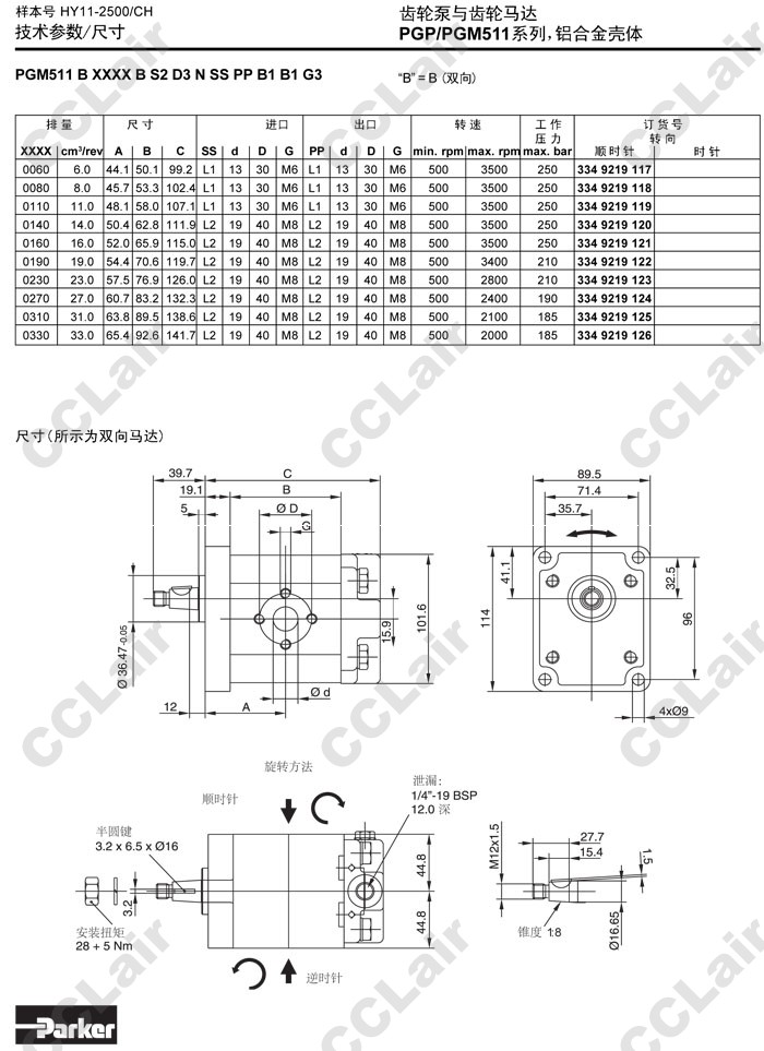 PGP511B0310CS4D3,Parker PGP511B0310AA1H1,PGP511B0310AC1H2,PGP511B0310AC1H3,PGP511B0310AF1D4,PGP511B0310AF1Q2,
