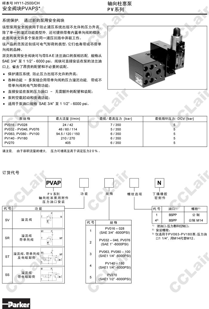 詳細(xì)信息 PVAPSV11,PVAPSV21,PVAPSV31,PVAPSV41,PVAPSV51,PVAPSR11,PVAPSR21,PVAPSR31,PVAPSR41,PVAPSR51,Parker安全閥塊