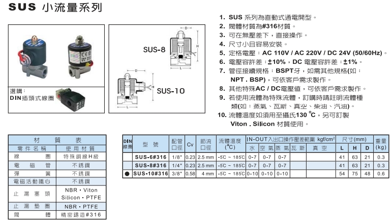 SUS-6,SUS-8,SUS-10,UNI-D小流量電磁閥