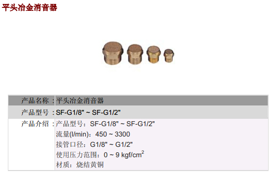 SF-G1/8",SF-G1/2",POSU平頭冶金消音器