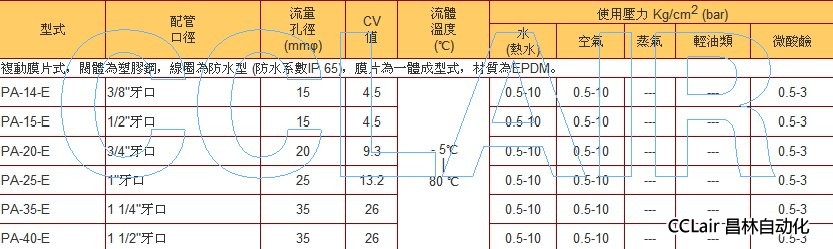 PA-14-E,PA-15-E,PA-20-E,PA-25-E,PA-35-E,PA-40-E,常閉電磁閥