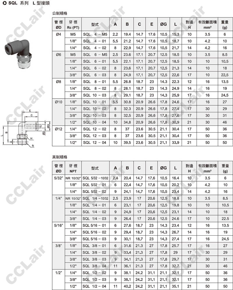 氣立可(chelic),SQL4-01,SQL6-01,SQL8,SQL10,SQL12,SQL5/32-10/32,SQL1/4,SQL5/16,SQL3/8,SQL1/2