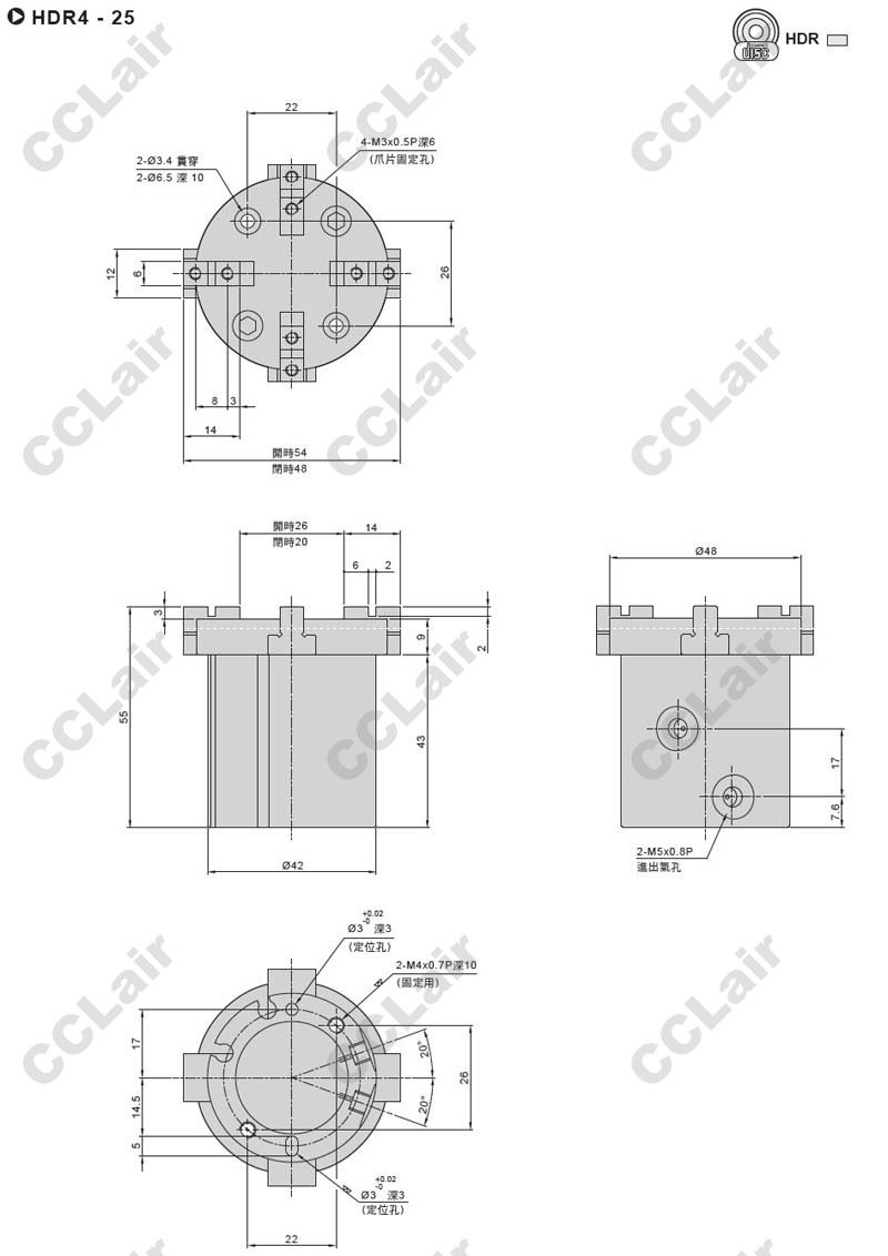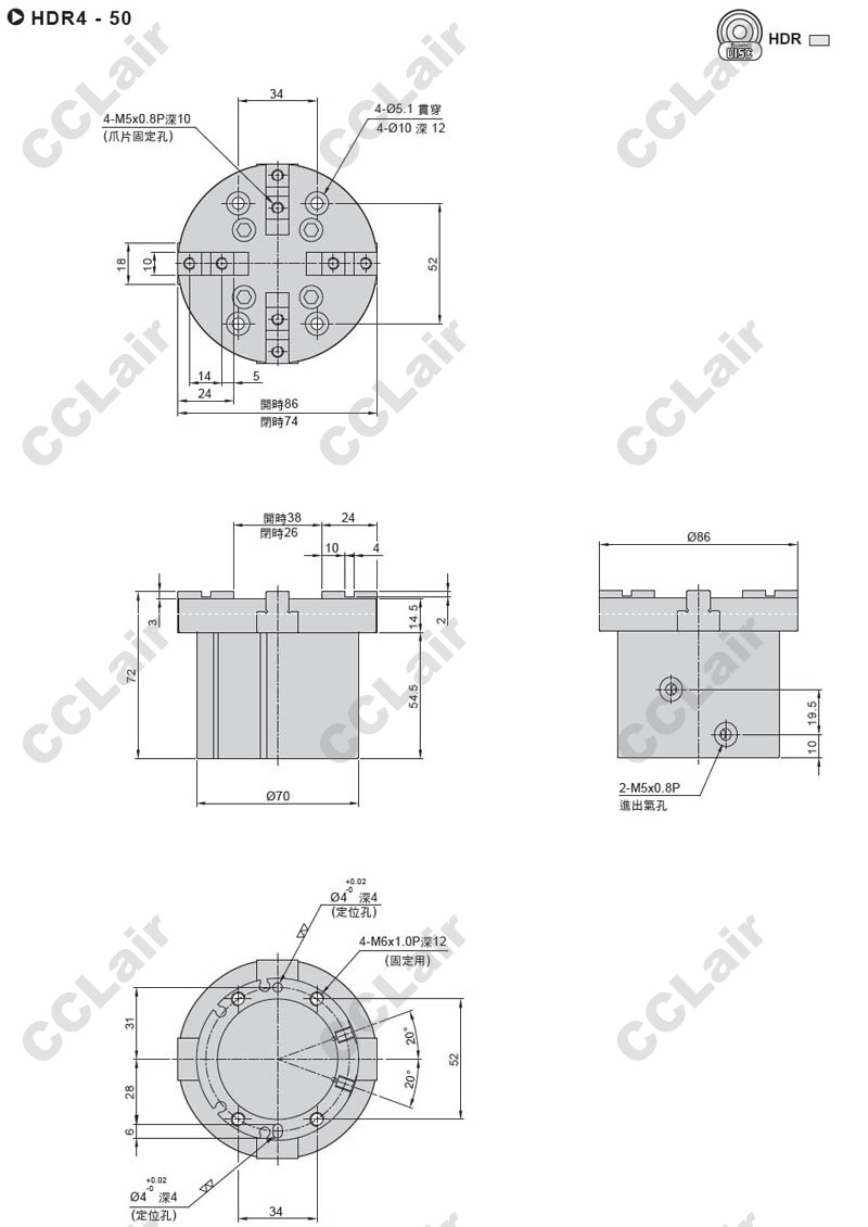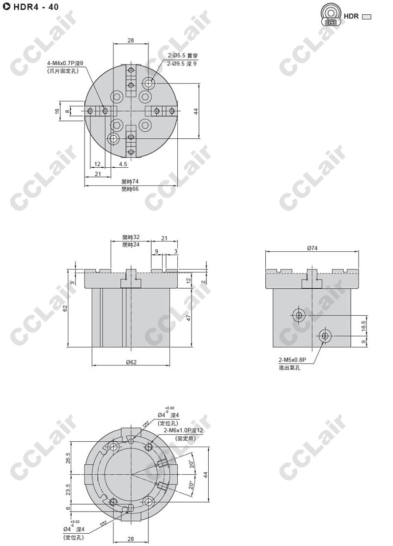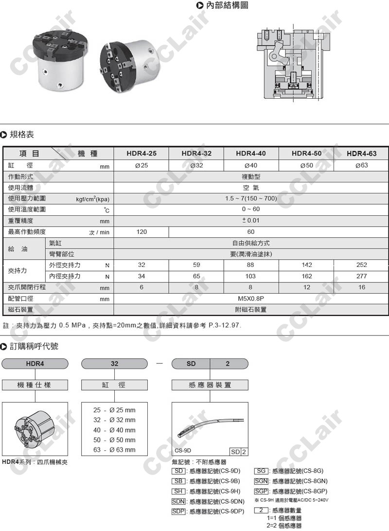 氣立可(chelic),HDR4-25-SD2,HDR4-32,HDR4-40,HDR4-50,HDR4-63,HDR425-SD2,HDR432-SD2,四爪機械夾