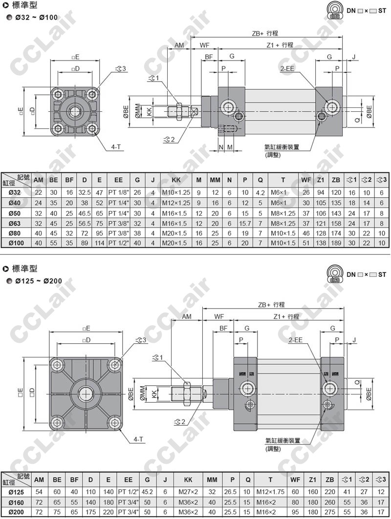 氣立可(chelic),DN32*25,DN40X50,DN80*450,DNL125*200,DNL160X300,DND100*200,DND32X25,標準型氣缸