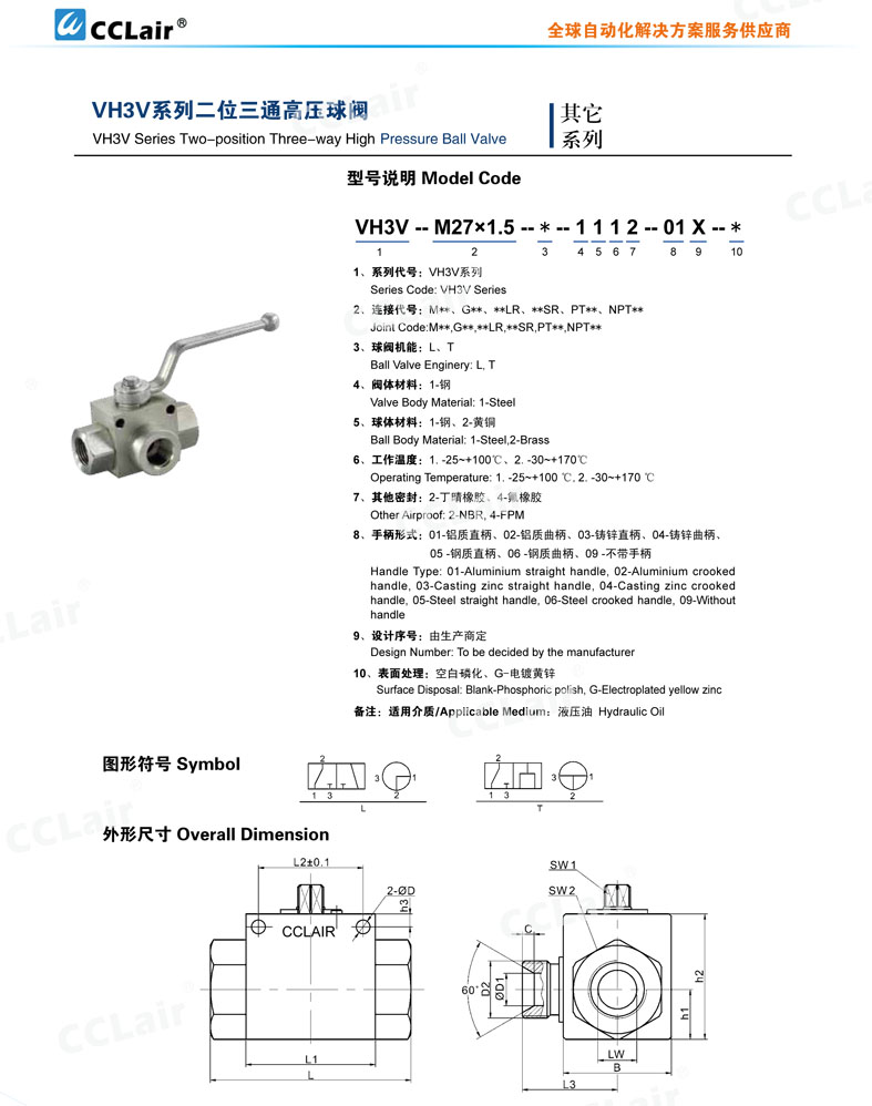 VH3V-G1/4,VH3V-G3/8,VH3V-G1/2,VH3V-G3/4,VH3V-G1,二位三通高壓球閥