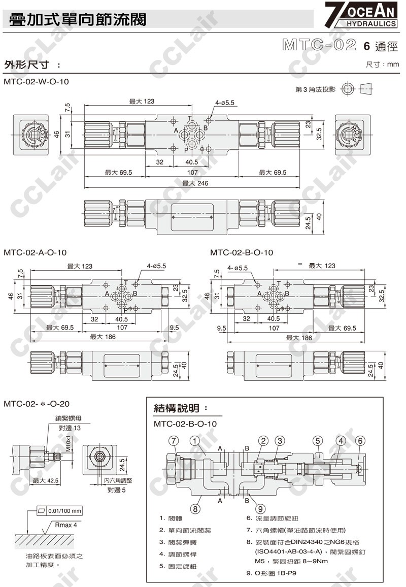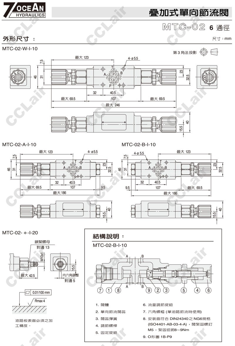 詳細(xì)信息 MTC-02-W,MTC-02-A,MTC-02-B,MTC-02-A-I-10,MTC-02-W-O-20,MTC-02-B-I-20,7OCEAN七洋疊加式單向節(jié)流閥