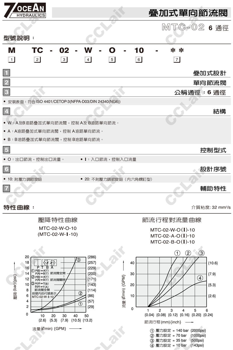 MTC-02-W,MTC-02-A,MTC-02-B,MTC-02-A-I-10,MTC-02-W-O-20,MTC-02-B-I-20,7OCEAN七洋疊加式單向節(jié)流閥