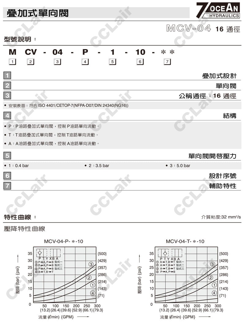 MCV-04-P,MCV-04-T,MCV-04-A,MCV-04-P-3-10,MCV-04-T-1-10,MCV-04-A-2-10,7OCEAN七洋疊加式單向閥