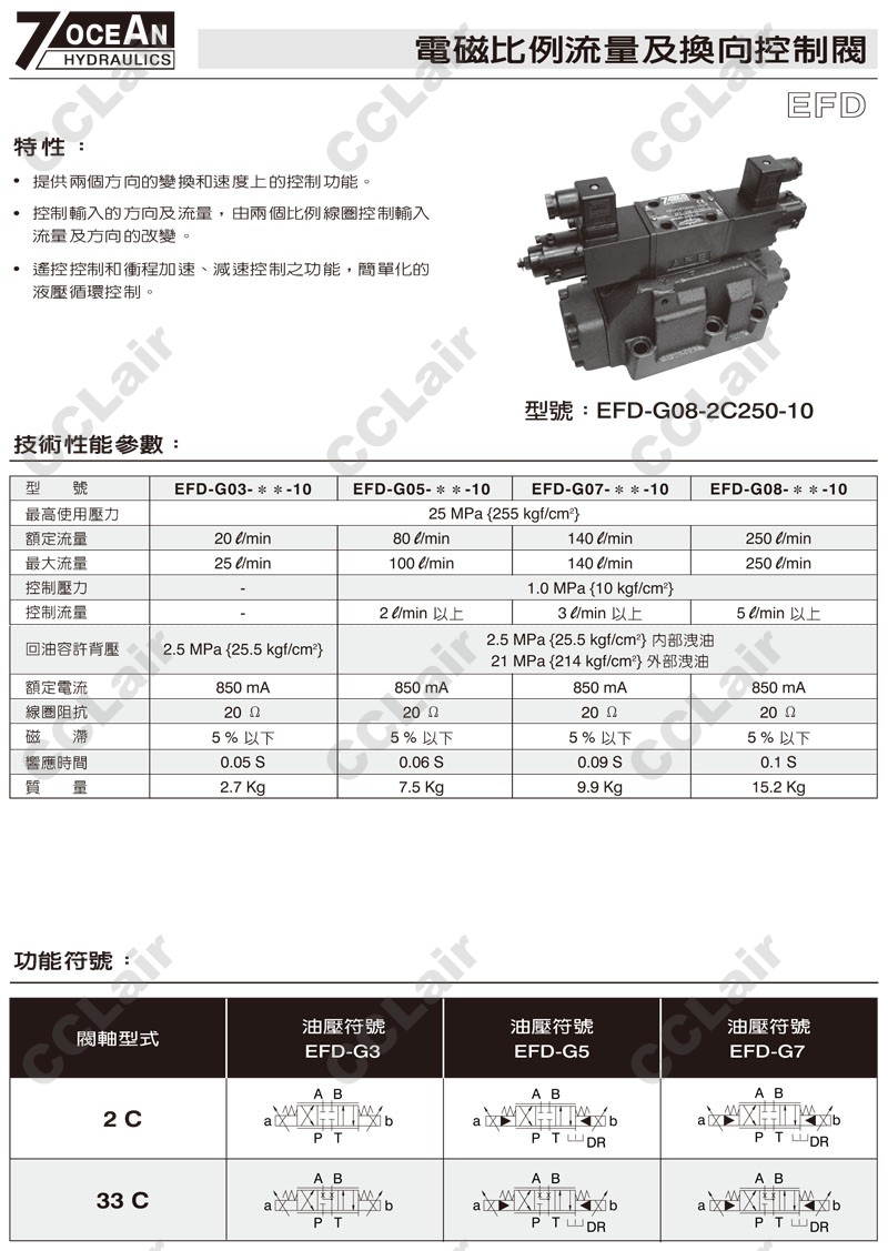 EFD-G03-2C20,EFD-G03-33C20,EFD-G03-33C20-ET-10,7OCEAN七洋電磁比例流量及換向控制閥