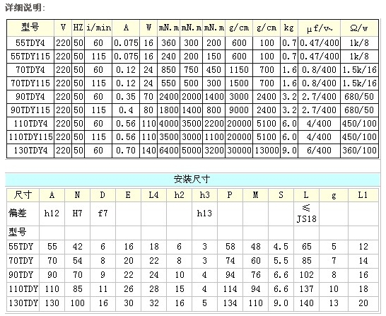 詳細信息 55TDY4,55TDY115,70TDY4,90TDY115,110TDY4,130TDY4,電機