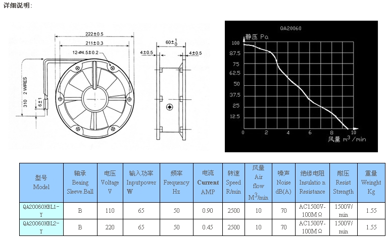詳細信息 QA20060HBL1-Y,QA20060HBL2-Y,交流風(fēng)機