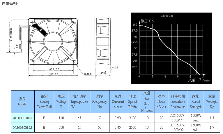 詳細(xì)信息 QA20060HBL1,QA20060HBL2,交流風(fēng)機(jī)