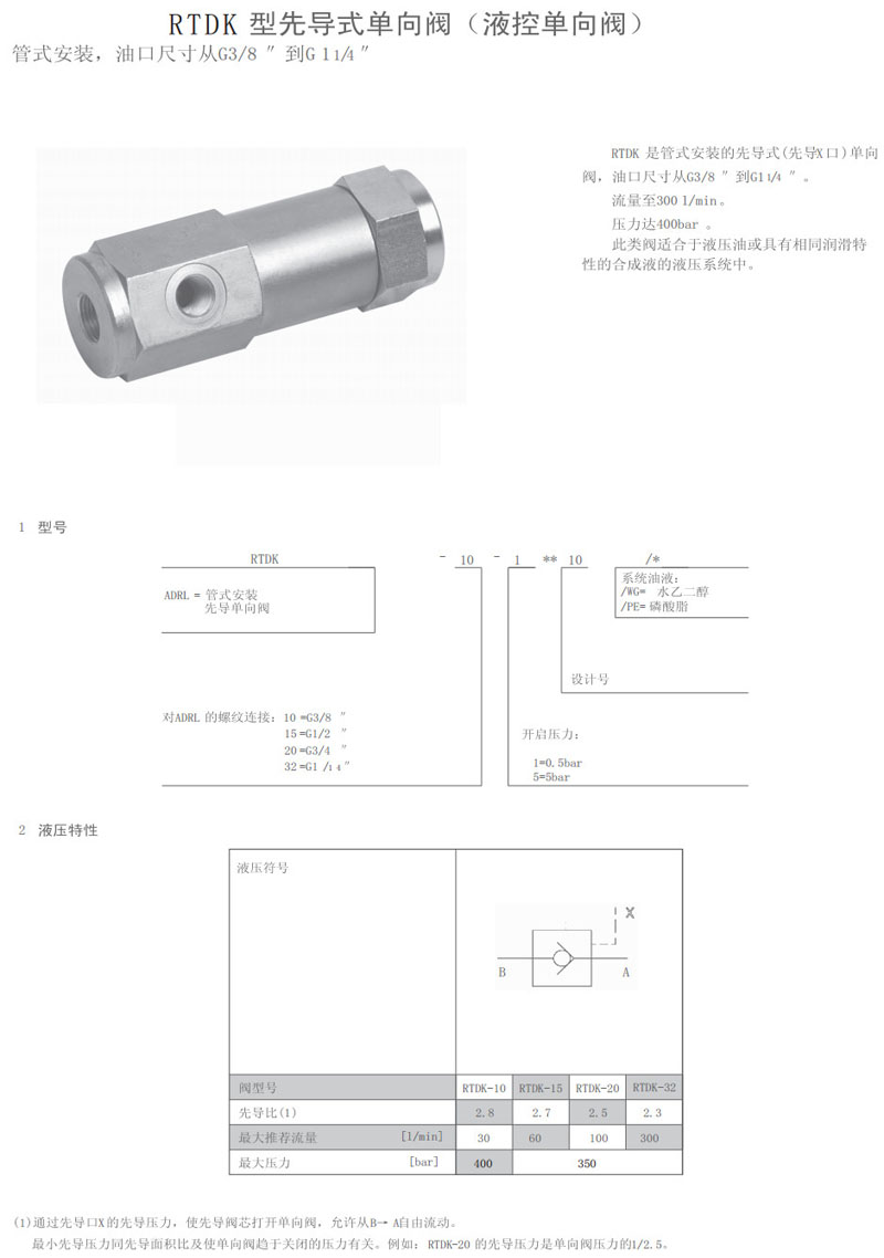 詳細信息 RTDK-10-1-10,RTDK-15-1-10,RTDK-20-5-10,RTDK-32-5-10,先導式單向閥