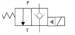 當(dāng)電磁鐵通電時(shí),P口到T口不通,當(dāng)T口壓力超過電磁鐵力,T口到P口的方向打開。