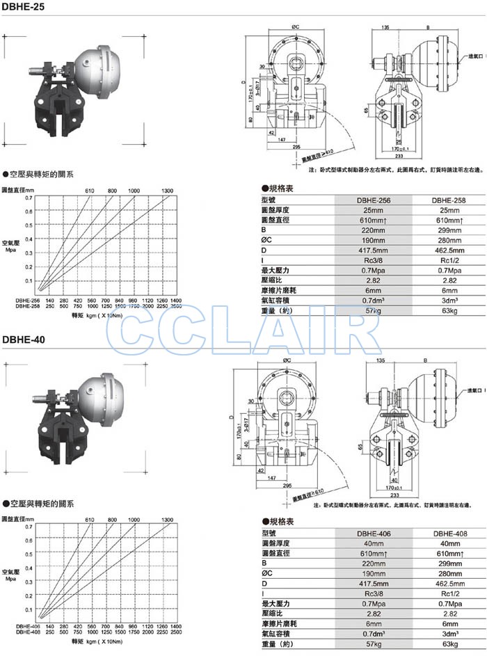 詳細信息 DBHE-256,DBHE-258,DBHE-406,DBHE-408,空壓碟式制動器