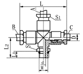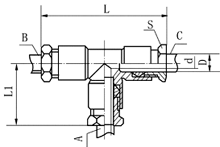 Ⅱ 卡套式三通終端管接頭 公稱(chēng)通徑?10mm 接口螺紋ZG3/8″。
