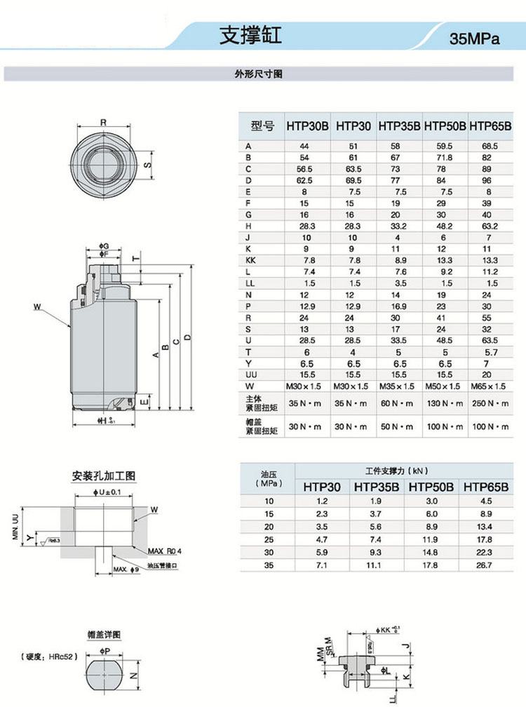 HTP30B,HTP30,HTP35B,HTP50B,HTP65B,油壓支撐缸