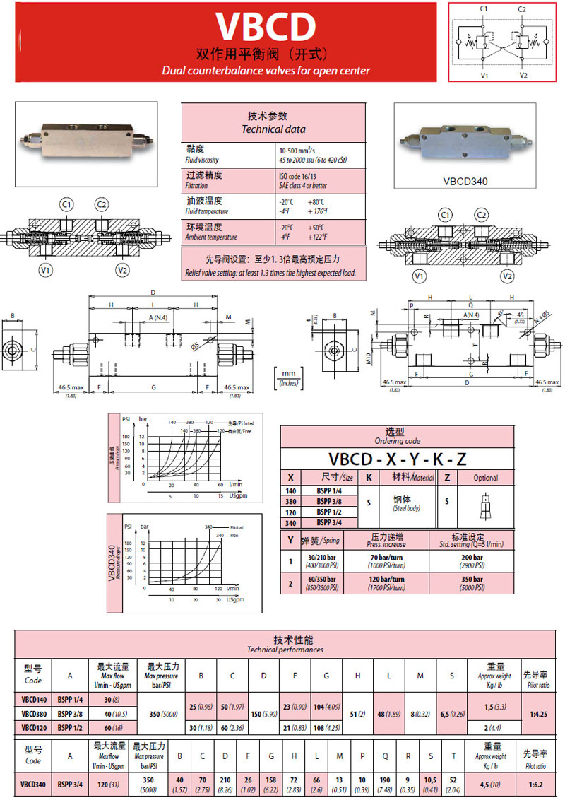 詳細信息 VBCD140,VBCD380,VBCD120,VBCD340,雙作用平衡閥