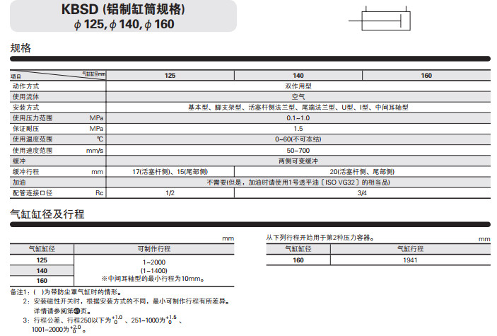 KBSDS125,KBSDS140,KBSDS160,KBSDJS125,KBSDJS140,KBSDJS160,KCSD125,KSD標準氣缸