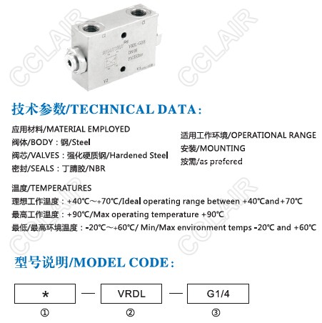 VRDL-G1/4,VRDL-G3/8,VRDL-G1/2,VRDL-G3/4,VRDL,雙向液壓鎖
