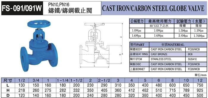 FS-091/091W鑄鐵截止閥是一種常用的截斷閥,主要用來按通或截斷管路中的介質,一般不用于調節(jié)流量,截止閥適用的壓力、溫度范圍很大,但一般用于中、小口徑的管道。與閘閥相比,截止閥的結構較簡單,制造與維修都較方便,密封面不易磨損、擦傷,密封性較好,壽命較長,啟閉時閥瓣行程較小,啟閉時間較短,閥門高度較小。廣泛用于給排水、煤氣、電力、冶金、石油、輕紡以及城建等行業(yè),在蒸汽、水、油類介質的管路上作啟閉用。