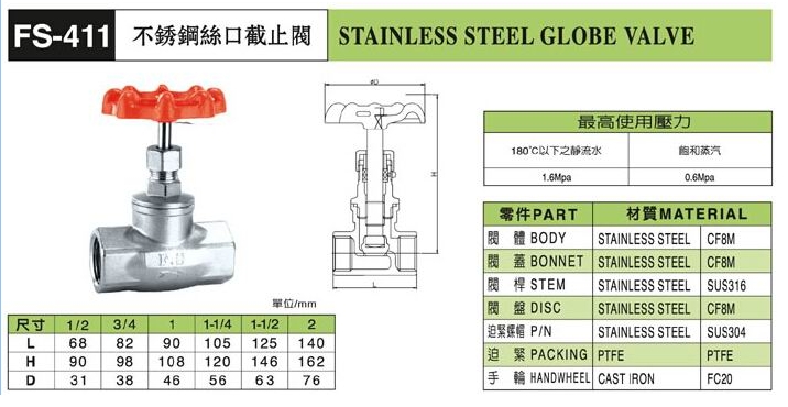 FS-411,不銹鋼絲口截止閥