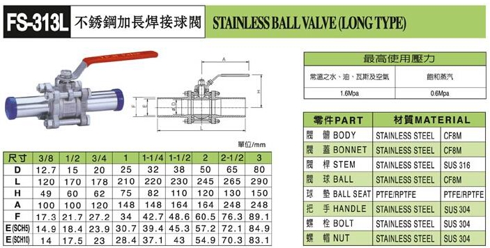 FS-313L,不銹鋼加長(zhǎng)焊接球閥