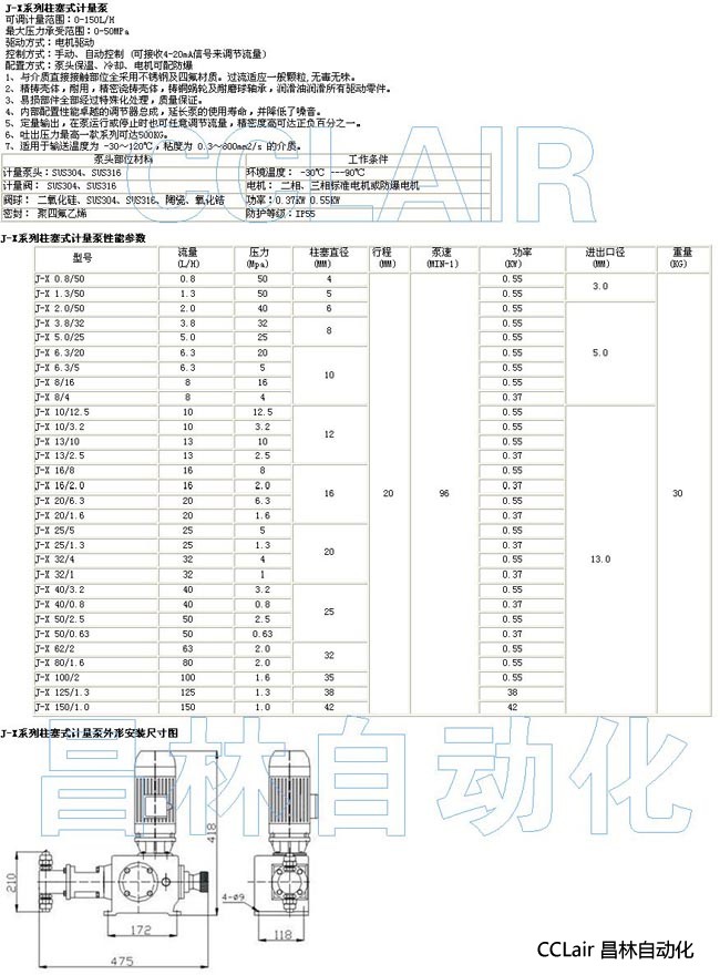 J-X 0.8/50,J-X 1.3/50,J-X 2.0/50,J-X 3.8/32,柱塞式計量泵