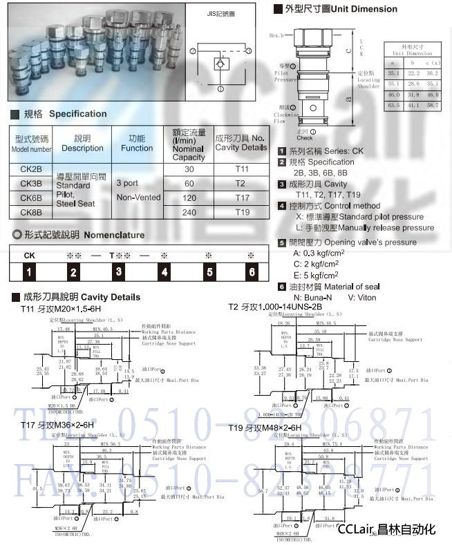 CK2B,CK3B,CK6B,CK8B,插式液控單向閥