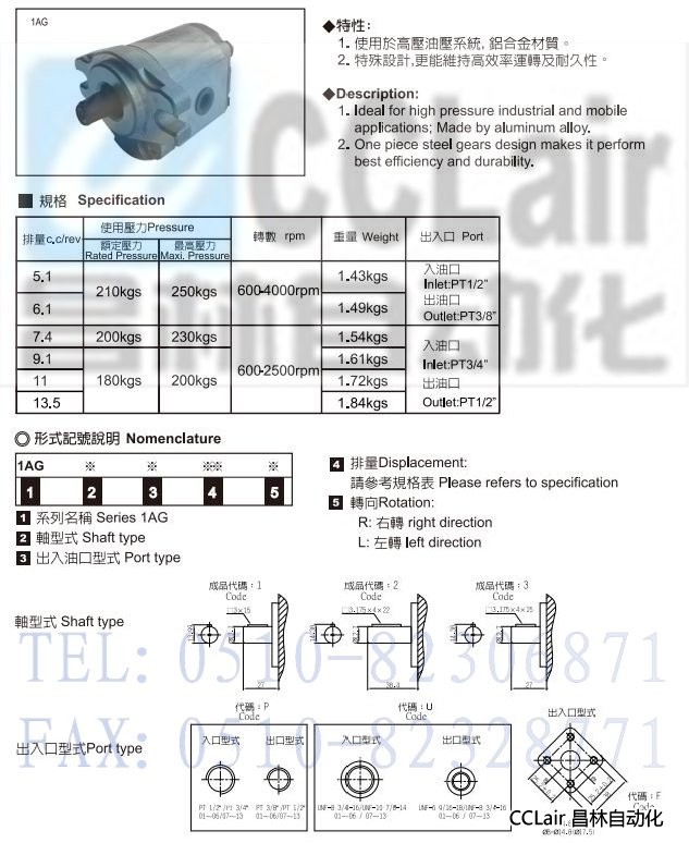 詳細(xì)信息 1AG1P,1AG1U,1AG1F,1AG2P,1AG2U,1AG2F,1AG3P,1AG3U,1AG3F,齒輪泵