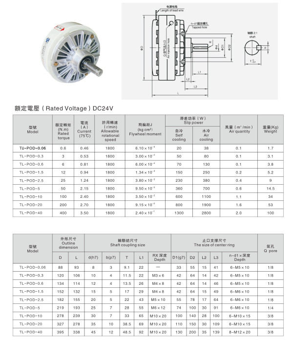 TL-POD-0.06,TL-POD-0.3,TL-POD-0.6,TL-POD-1.5,TL-POD-2.5,TL-POD-5,TL-POD-10,TL-POD-20,TL-POD-40磁粉式剎車器