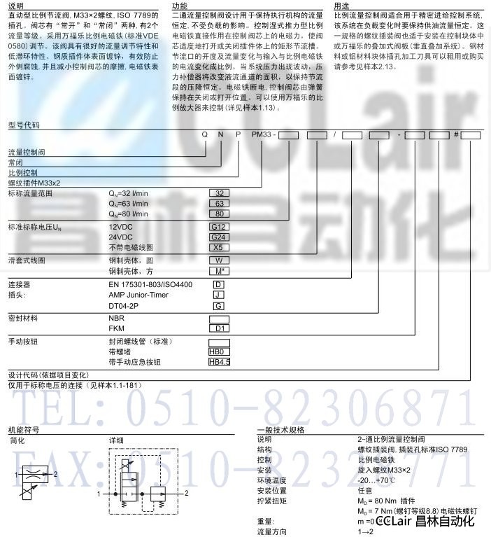 詳細(xì)信息 QNPPM33,插裝式比例 2-通流量控制閥(滑套式線圈)