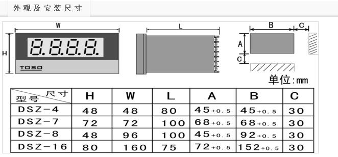 | 顯示范圍 | 六位:0-999999 四位:0-9999 |