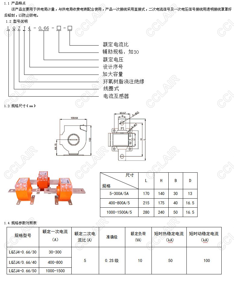 LQZJ4-0.66/30,LQZJ4-0.66/40,LQZJ4-0.66/50,LQZJ4-0.66(AKH-0.66/Q),計量用電流互感器